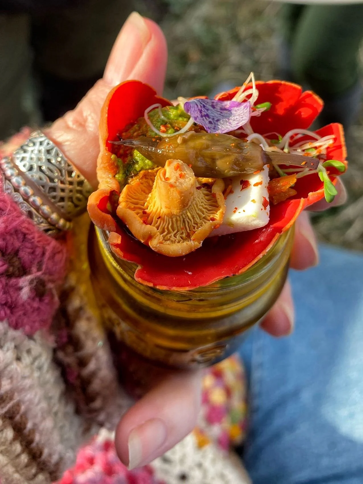 All meals are prepared by Tee, our wild food chef, who brings together locally sourced ingredients and foraged plants to create dishes that feel as good as they taste - food rooted in the land that holds us.We eat together, communally and unhurriedly, so every meal becomes part of the retreat itself: connection, conversation, and nourishment beyond the plate.
